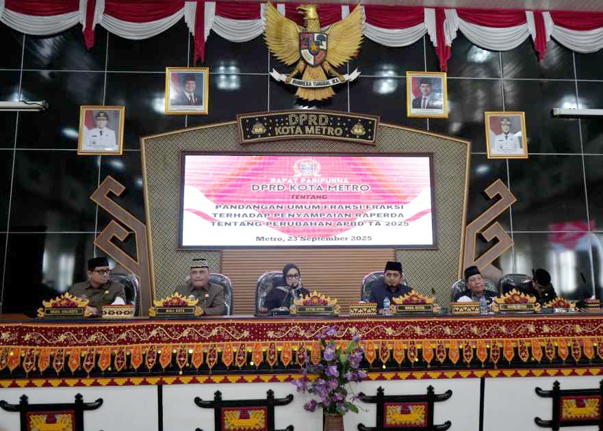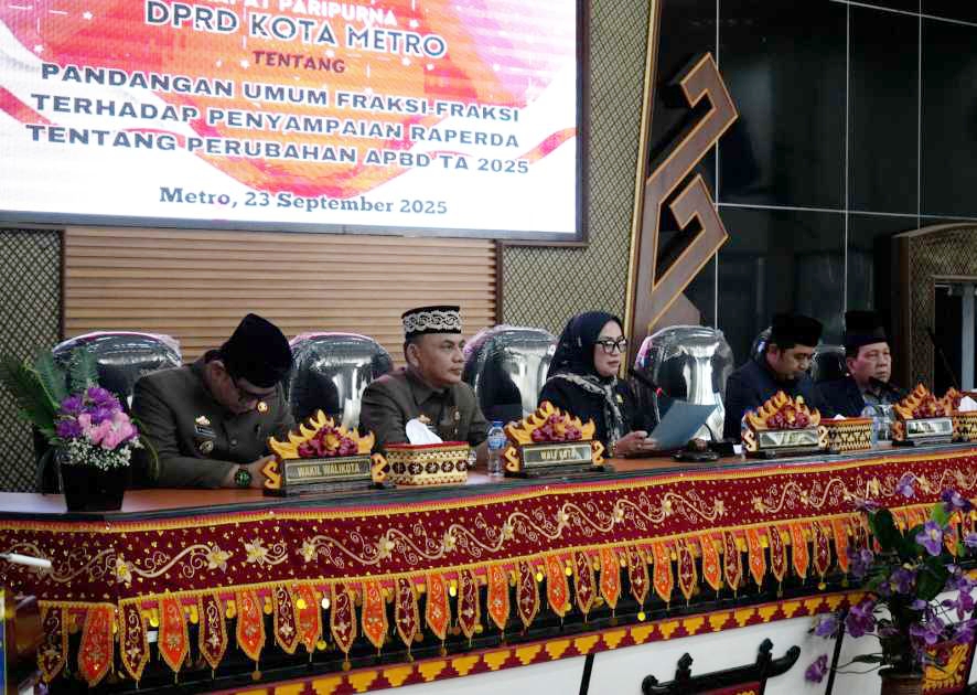 “Atas nama seluruh Fraksi di DPRD Kota Metro, kami menyambut baik pengajuan Perubahan APBD Tahun Anggaran 2025 dalam rangka penyesuaian dengan dinamika yang ada, baik dari sisi pendapatan daerah maupun dari sisi belanja daerah,” ucapnya.